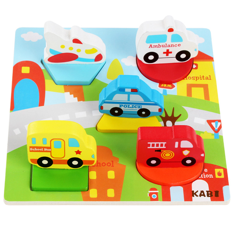 Деревянные, объемные вкладыши в виде разных видов транспорта.