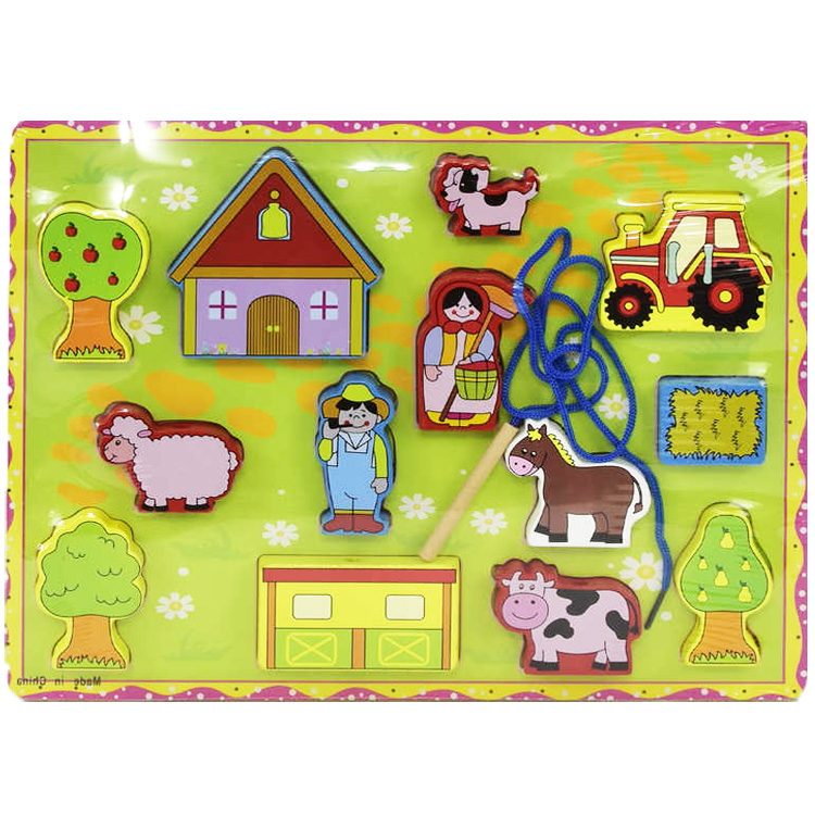 Объемные вкладыши фермерской тематики. Фигурки можно нанизывать на шнурочек с деревянной иглой (входит в комплект).