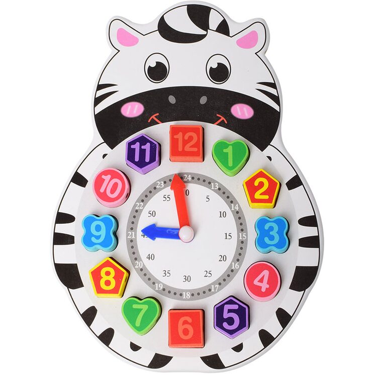 В одной игрушке соединено сразу несколько игр: рамка-вкладыш, вкладыши в виде геометрических фигур, шнуровка и часы. Основание выполнено в виде симпатичной зебры.