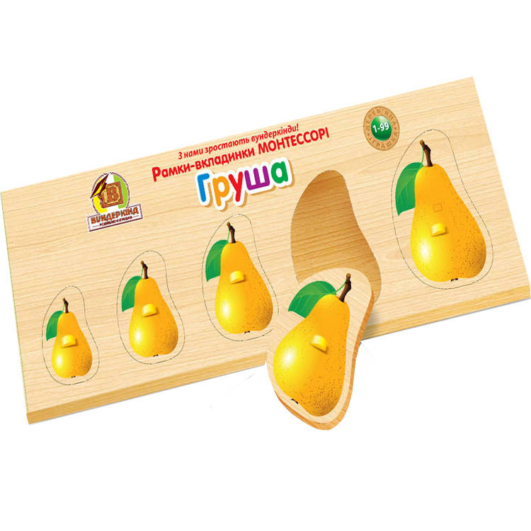 Рамка-вкладыш "Груша" снабжена удобными выступами, за которые малыш сможет брать фигурки. Играть с такой игрушкой можно под руководством взрослого или самостоятельно. Игра понятна на интуитивном уровне, без объяснений. Расставляя фигурки по местам, малыш учится различать предметы по величине, ощупывая их – он тренирует мелкую моторику пальчиков. Рамка-вкладыш "Груша" - это комплексная игрушка для развития самых разных способностей: логического мышления, интуиции, глазомера и так далее.