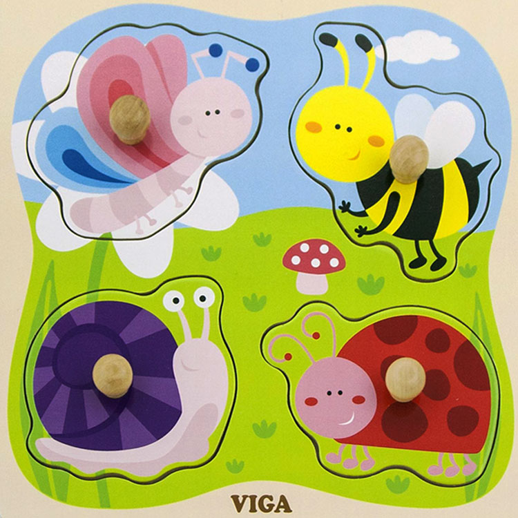 Рамку-вкладыш "Insects" придумали для самых маленьких, чтобы познакомить малыша с изображениями улитки, божьей коровки, бабочки, пчелки. У каждого насекомого есть свое занятие - хорошо если взрослый расскажет о них ребенку. Чтобы игра проходила интересно, все фигурки снабжены удобными кнопками и могут "покидать" свое "жилище". Затем малышу придется вернуть их на место. Если малышу удастся сразу подобрать нужную выемку, это будет большая победа. Если первый раз не получилось, картинка все равно будет восстановлена методом проб и ошибок. Рамка-вкладыш "Insects" относится к серии пазлов для годовалых малышей. Если ребенку понравится играть с такой игрушкой, купите ему домашних любимцев и диких животных из этой же серии.