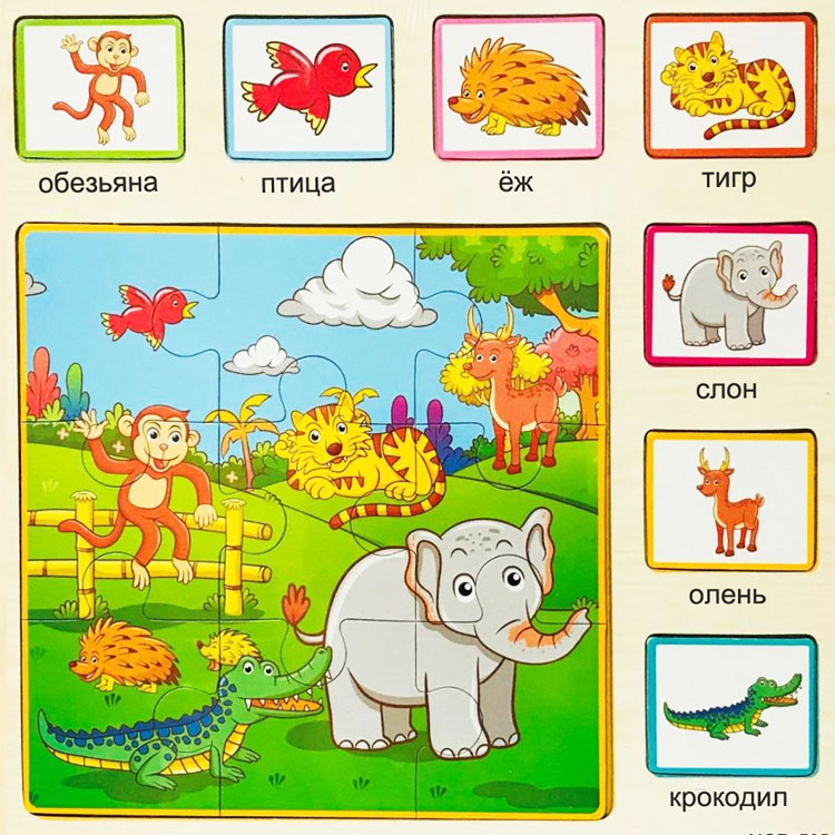 Вкладыши-пазлы с животными дикой природы.