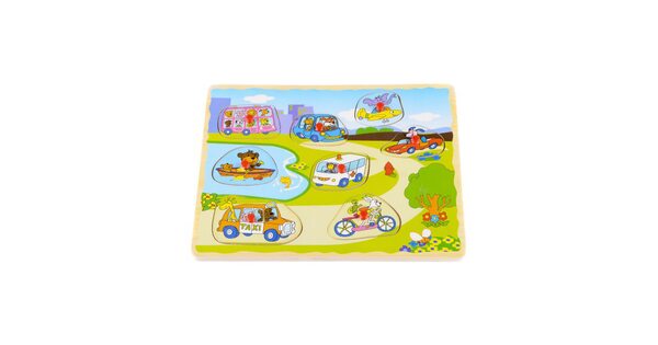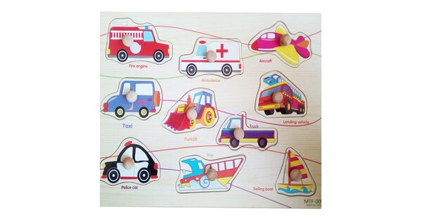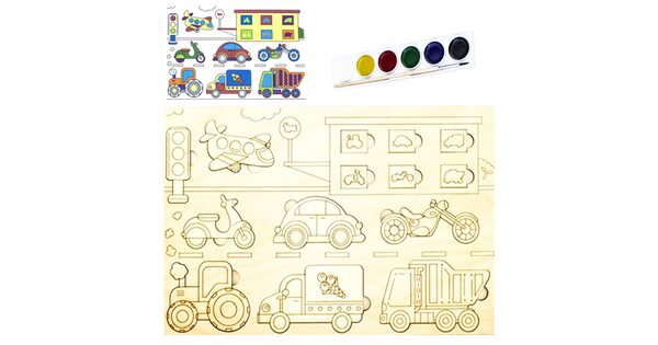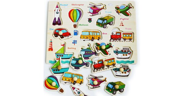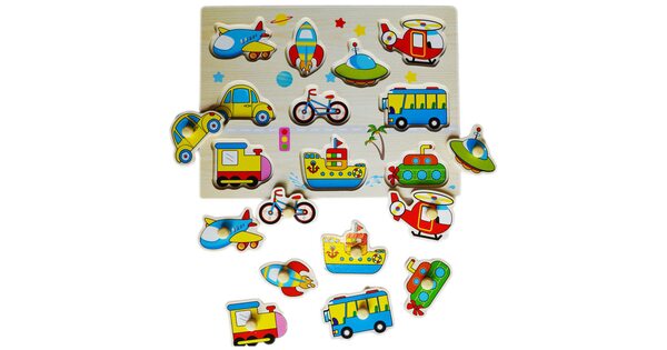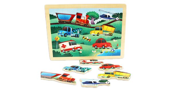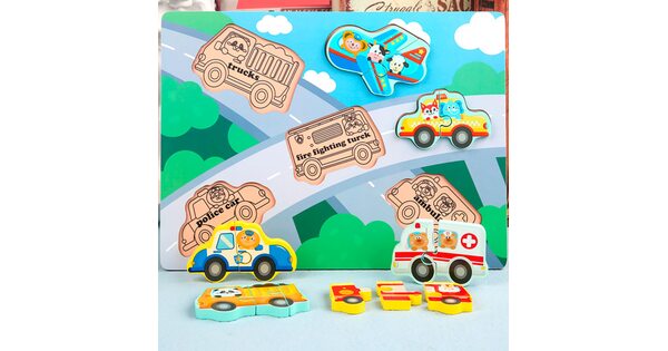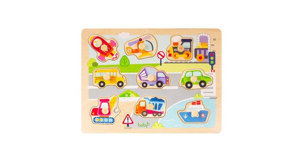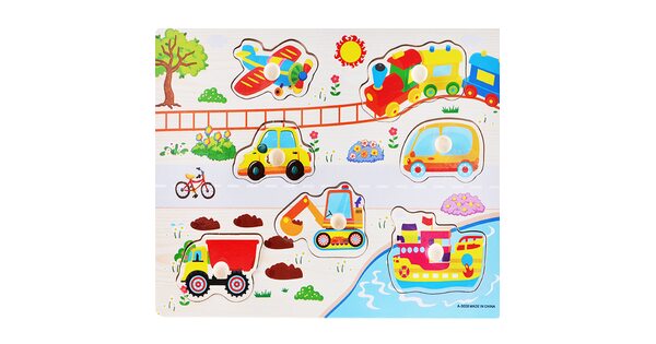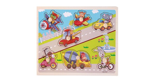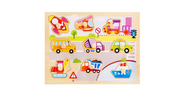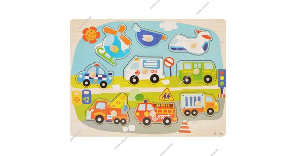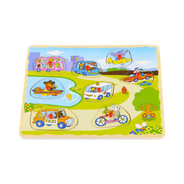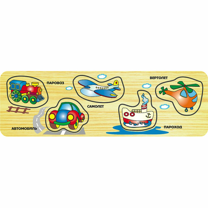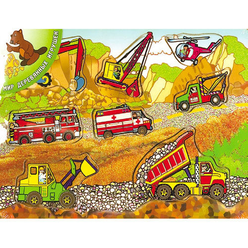 Малыши всегда с интересом реагируют на вкладыши «Транспорт». Ведь их ждет увлекательное приключение в компании больших и мощных машин. Пусть фигурки сделаны из дерева. Зато выглядят очень реалистично!
