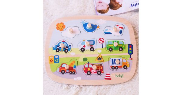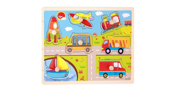 Деревянные игрушки «Транспорт» любимы детворой за приятные тактильные ощущения и шероховатую поверхность. С вкладышами в виде самолетов и автобусов легко устраивать ролевые игры: «Перевези матрешку», «Отремонтируй дорогу», «Доставь бизикуб» и т.п.