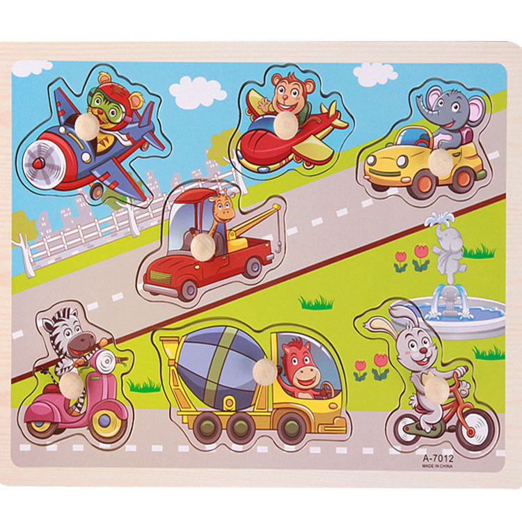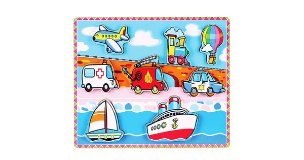Для деток постарше развивающие игрушки с изображением транспорта делают более сложными. Они состоят из 7-ми и более компонентов. Особенно нравится родителям и детям большой набор «Путешествие». Здесь представлено более 10 вкладышей на деревянной раме. Есть самосвал, автобус, поезд и даже воздушный шар!