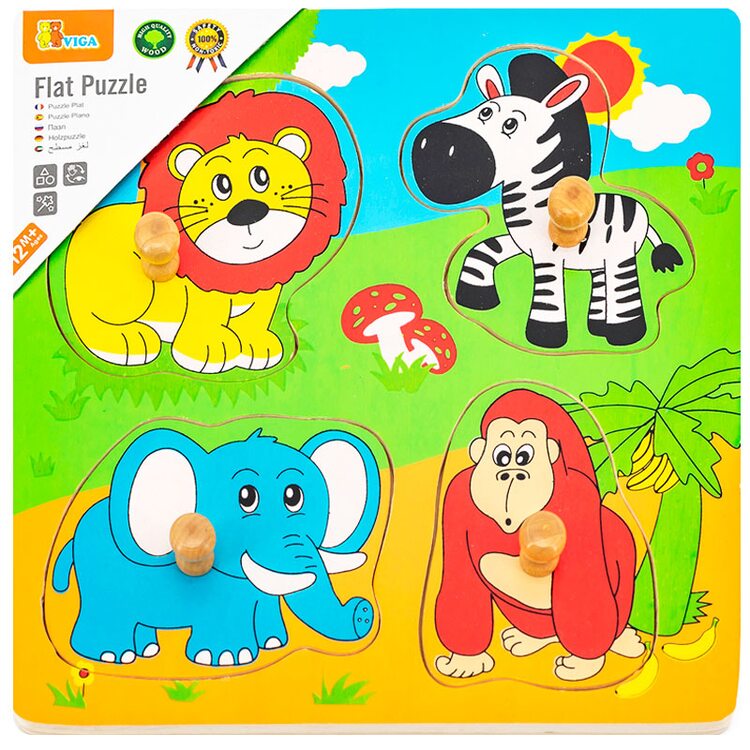 Деревянные вкладыши для самых маленьких. На основе расположено 4 вкладыша животных зоопарка лев, зебра, слон. обезьянка. Сами вкладыши оснащены специальной ручкой, что очень удобно для вынимания животных из своих "теплых" мест.