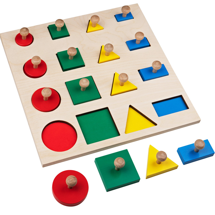 Деревянные цветные вкладыши «Геометрические формы» состоят из 16 элементов для увлекательной и полезной игры. Прекрасный Монтессори материал из категории «Рамки вкладыши» знакомит кроху с разновидностями геометрических фигур. Различного размера и цвета элементы отличное пособие для понимания форм и размеров.