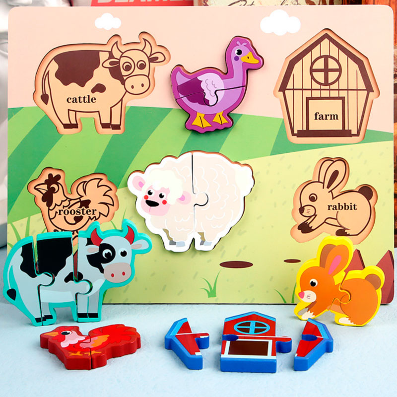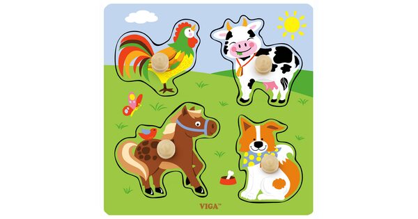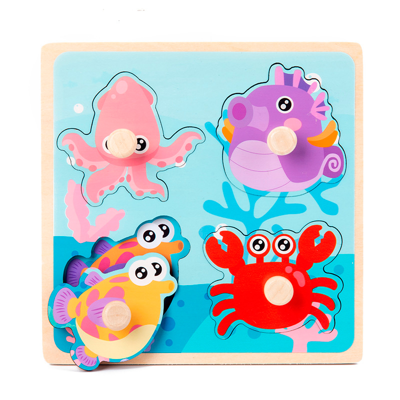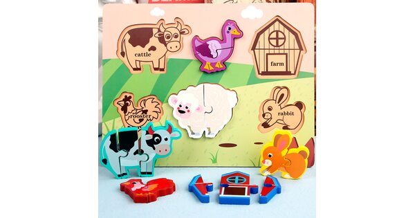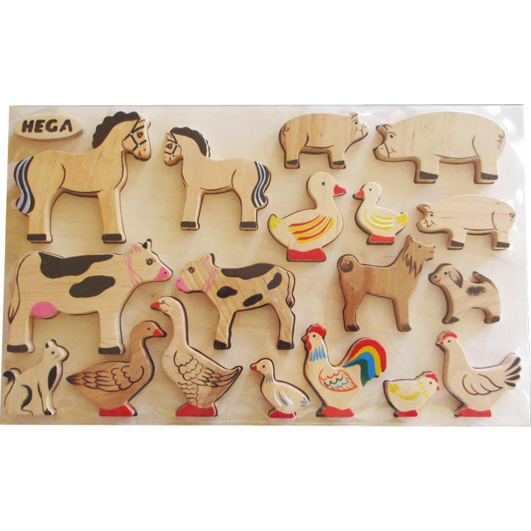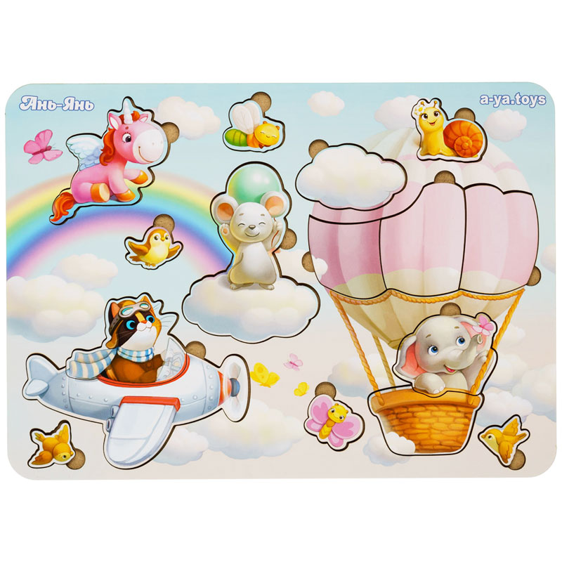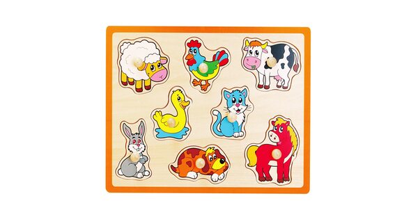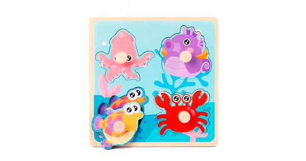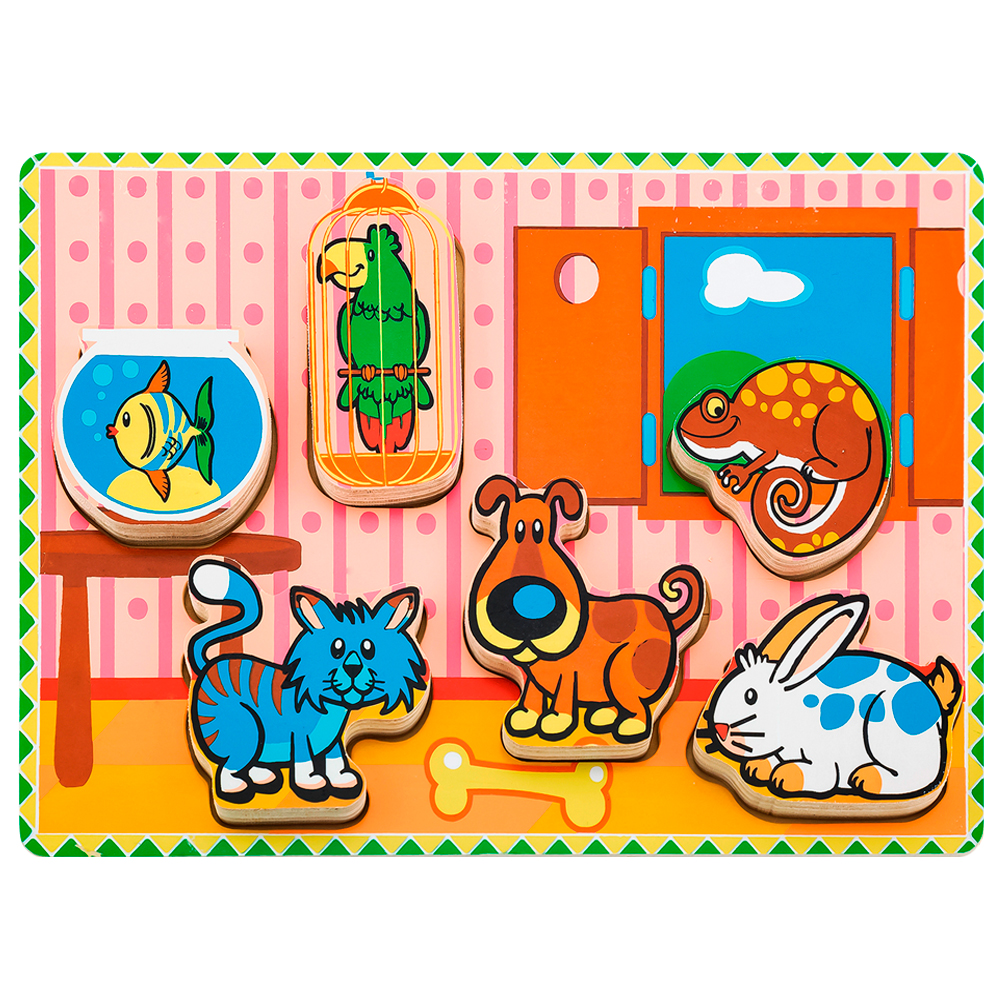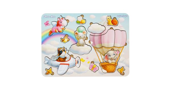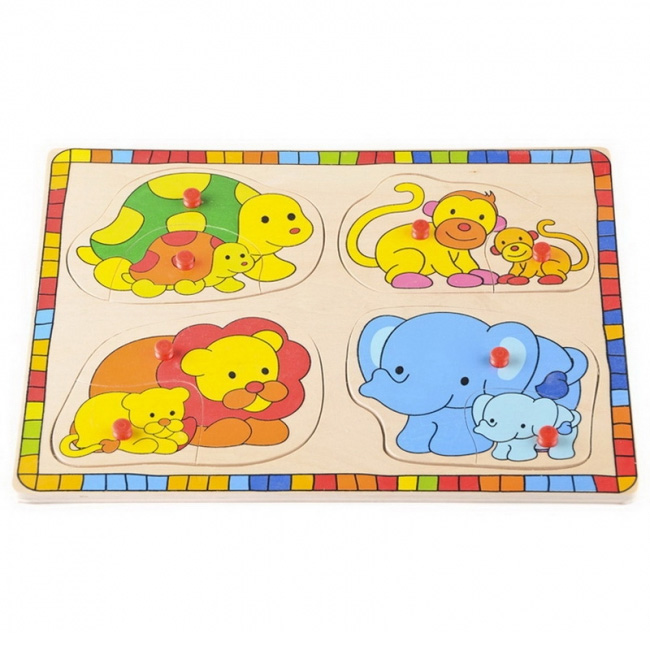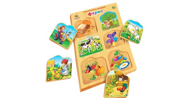 Пазлы входят в топ самых востребованных развивающих игрушек. Но картинки с большим количеством деталей для малыша бесполезны. Для него есть специальная серия деревянных вкладышей крупного формата. Фигурки здесь такого размера, что кроха не может их сломать или проглотить. Части игрушки не только соединяются между собой, но устанавливаются в специальные пазы на деревянных дощечках!