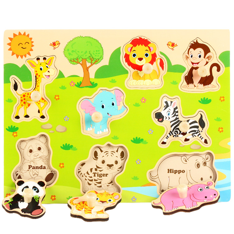 Игра из дерева предназначена для изучения животного мира и состоит из рамки-планшета, на которой находятся восемь вкладышей с изображениями обитателей зоопарка и жарких саван.