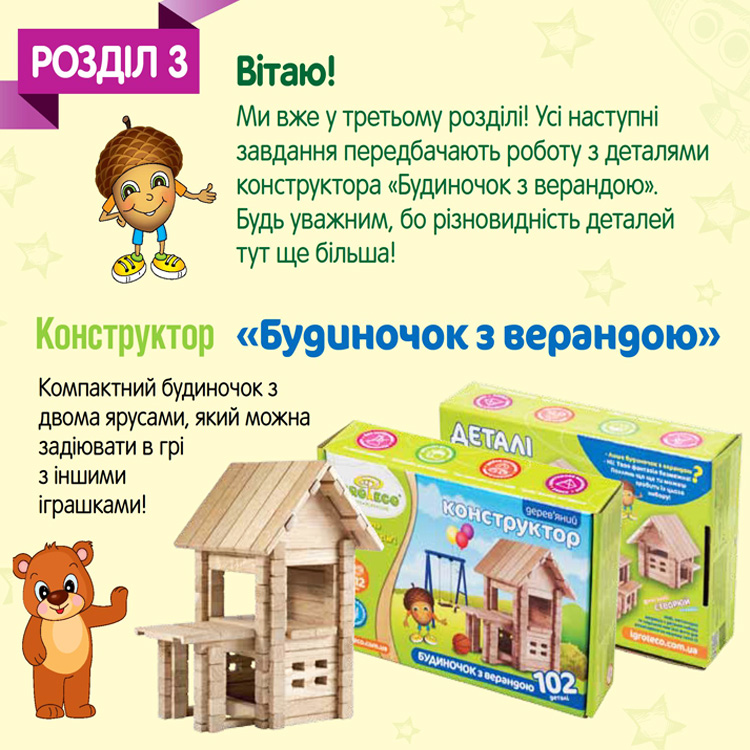 | Навыки | Игра поможет ребенку развить способность детей к анализу и синтезу, а также способность к комбинированию. |