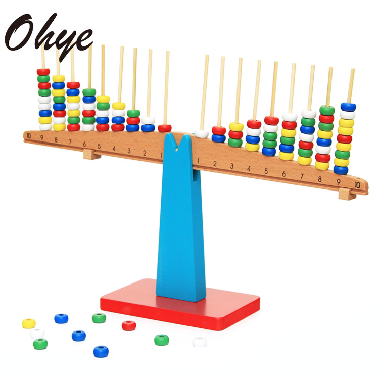 Ребенку не обязательно уравновешивать одинаковое количество бусинок с обеих сторон, это также будет связано и с расстоянием размещенных на полочке бус от точки опоры, что в свою очередь может помочь ребенку выяснить, какие это отношения и на что они влияют - это и станет ключом к арифметической балансировке. Вместо бус можно использовать любые предметы с отверстием по середине одинакового размера и веса.