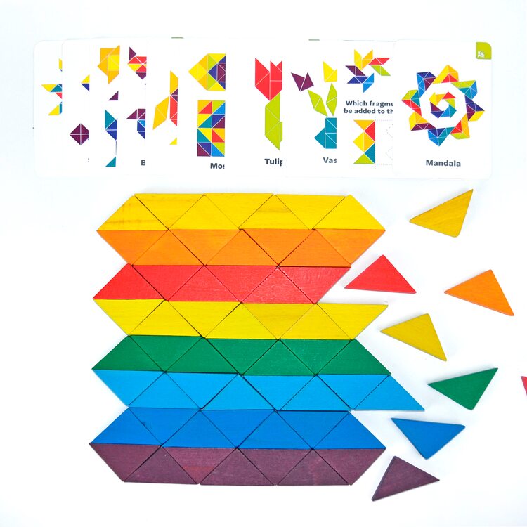 Деревянные формы-треугольники – идеальный подарок для ребенка, с которым можно играть как одному, так и в компании друзей или родных людей. Фигурки одинакового размера, с разными оттенками. Миниатюрный набор можно брать с собой в путешествия, строить с ребенком разнообразные фигуры, развивая тем самым воображение и логику. Треугольники не покрыты эмалью или лаком, поэтому не вредны для здоровья. Для хранения предназначается компактная картонная коробка.