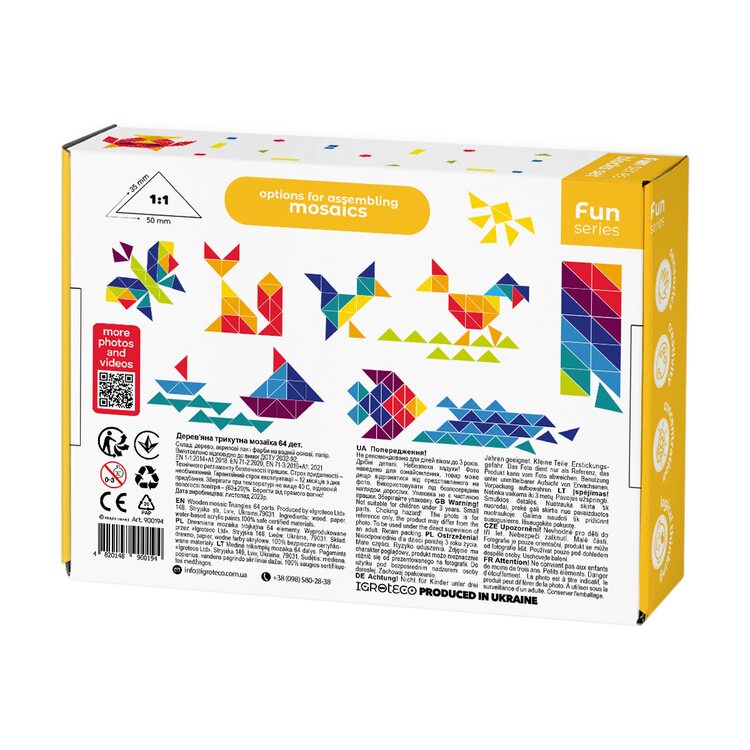 У нас троє дітей 3.5, 9, 10 років. Купувала для молодшого, але грати і збирати по карткам фігури подобається всім трьом. Використовувати можна для навчання лічби. Дуже цікаві фігури на картках. Якістю набору задоволена. |