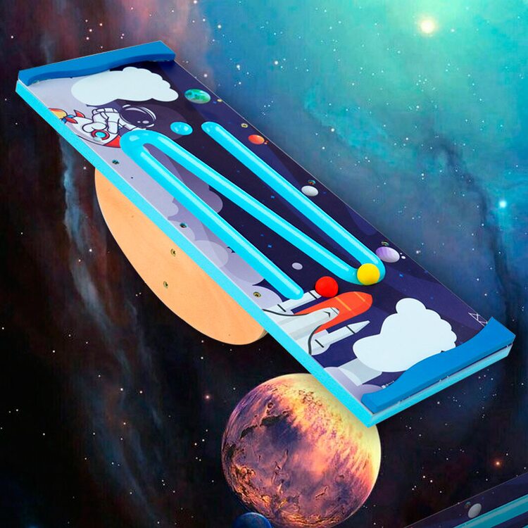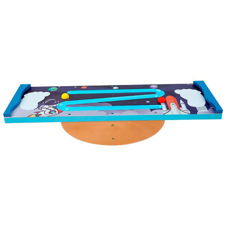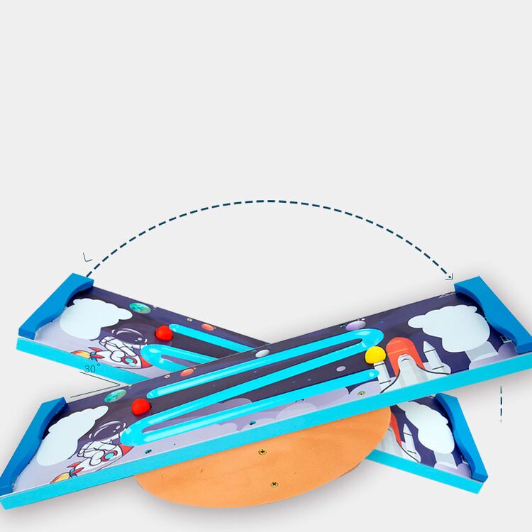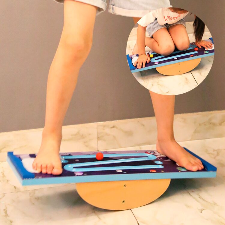 Представляем Вашему вниманию игру на развития координации движений. Суть игры: научится балансировать с помощью перекатывания с ноги на ногу на специальной доске. При перекатывании нельзя держаться руками. В комплект входят 2 шарики, которые нужно прокатить по дорожке лабиринта на основании доски с помощью ног.