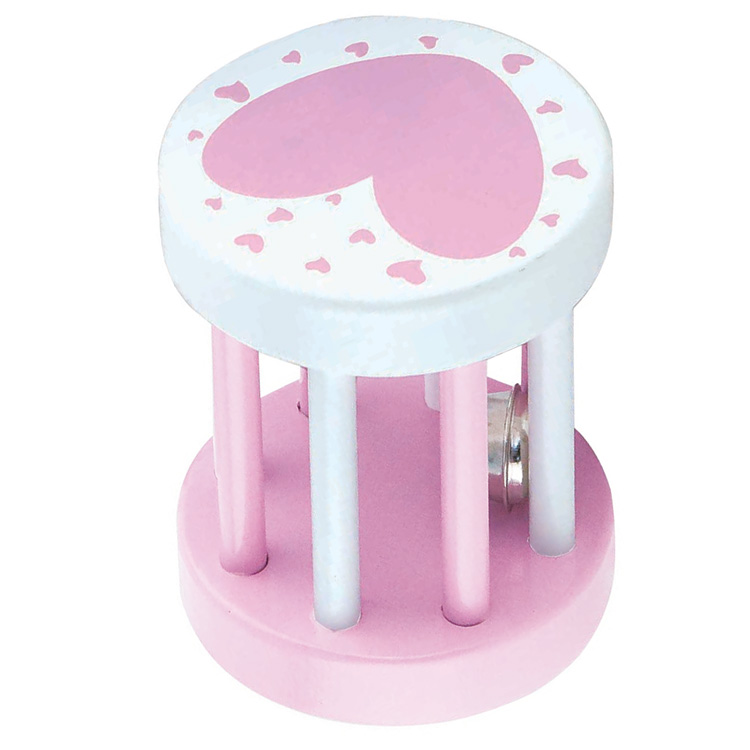 Деревянная погремушка выполнена в приятных бело-розовых тонах с нарисованным сердечком. Приятно держать такую погремушку в руках: не тяжелая, идеально отшлифованная, приятные не раздражающие тона, да еще со звуком. Внутри игрушечки находится маленький шарик, который при движении издает звук.