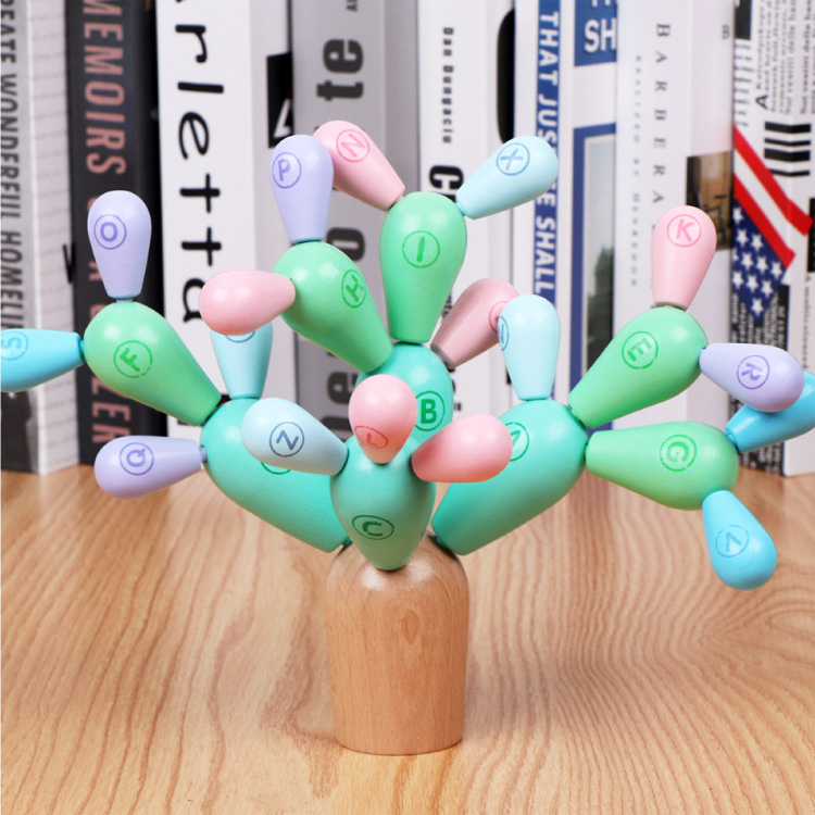 Необычная игрушка деревянный кактус с буквами относится к категории «Балансиры». Удивительная и полезная забава напоминает «бонсай» с цветными листьями. Комплект с необычным дизайном конструкции пригодится ребенку для изучения букв английского алфавита. Аккуратное деревце будет расти в разные стороны так, как того пожелает ваш вундеркинд.