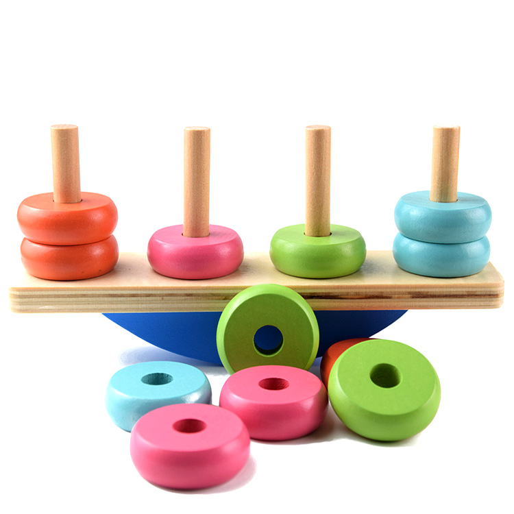 Игра с балансиром «Колечки» поможет малышу усвоить слова «поровну», «перевес», «неодинаковый», а также сделает понятными основы простого счета.