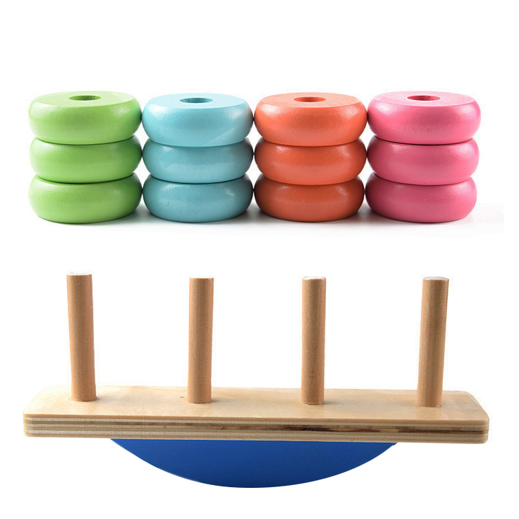 С такой игрушкой можно проводить очень интересные занятия, причем использовать деревянные кольца можно отдельно от основы. Предложите малышу: