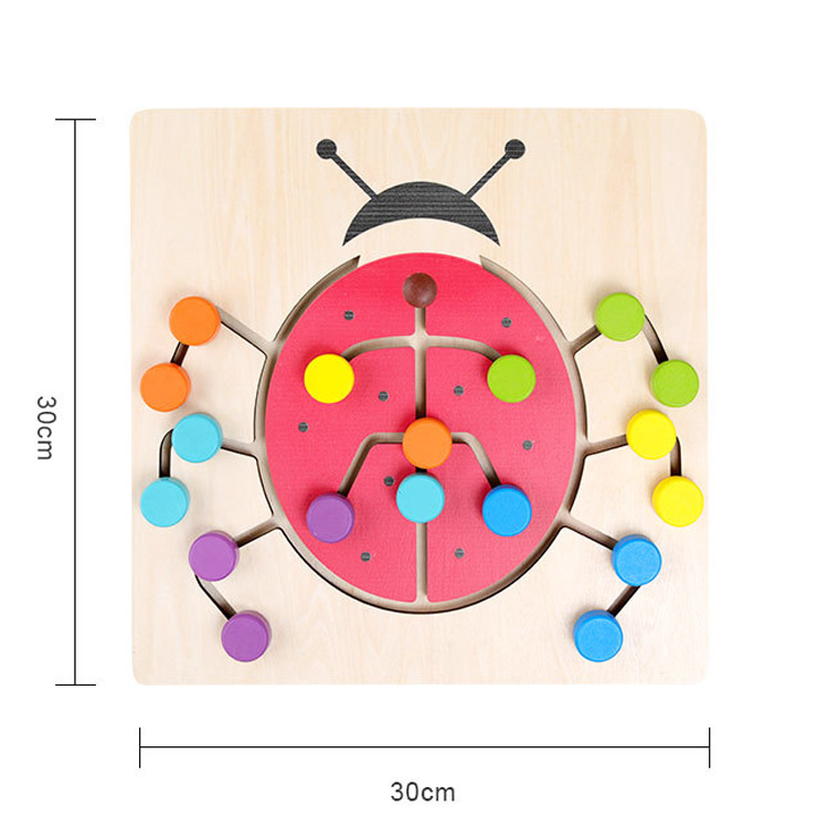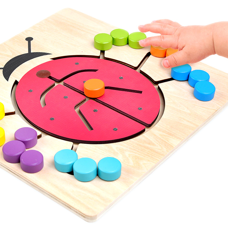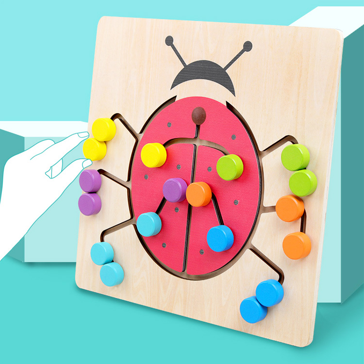 Забавное насекомое на деревянном планшете относится к серии развивающих игрушек. Само оно не может двигаться. Зато легко изменить ему цвет лап и расположение цветных украшений на крыльях! «Украшать» жука можно по заданной схеме или придумать свой собственный узор.