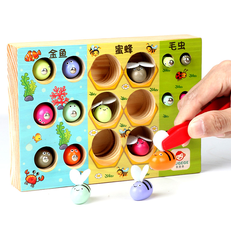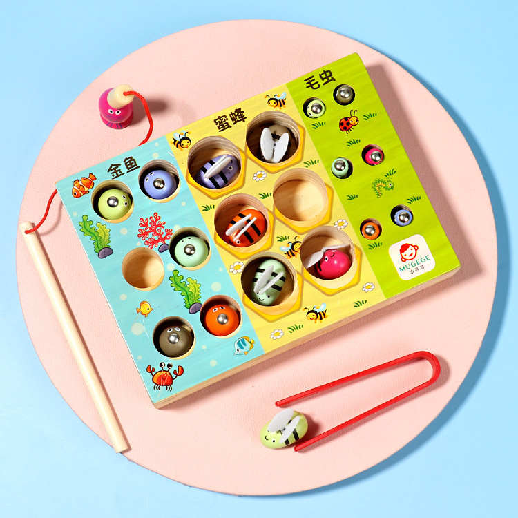 Три рыбалки в одной игре. Нужно выловить рыбок и гусеничек со своих укромных мест с помощью удочки, а пчелок помогут достать с их домиков щипцы. Увлекательно занятие ожидает Вашего малыша. Такая игрушка станет любимой на долгое время.