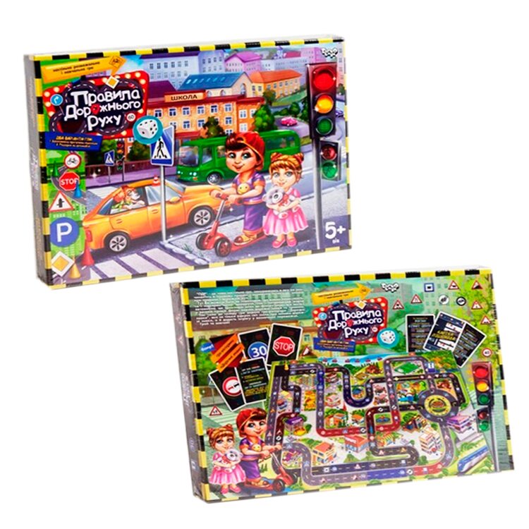 Набор состоит из игрового поля, карточек с дорожными знаками, с заданиями, игрового кубика и фишек игроков. Играя, рассказываете о каждом знаке, где он применяется, что означает. Это полезная информация, которая пригодится ребенку в повседневной жизни и сможет уберечь от неправильных действий на дороге. Предупрежден значит "вооружен"!