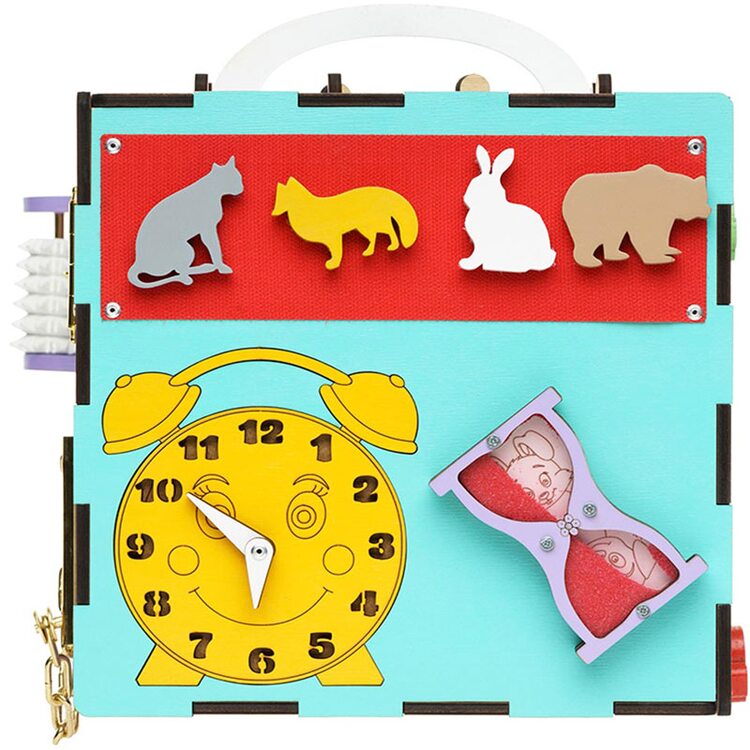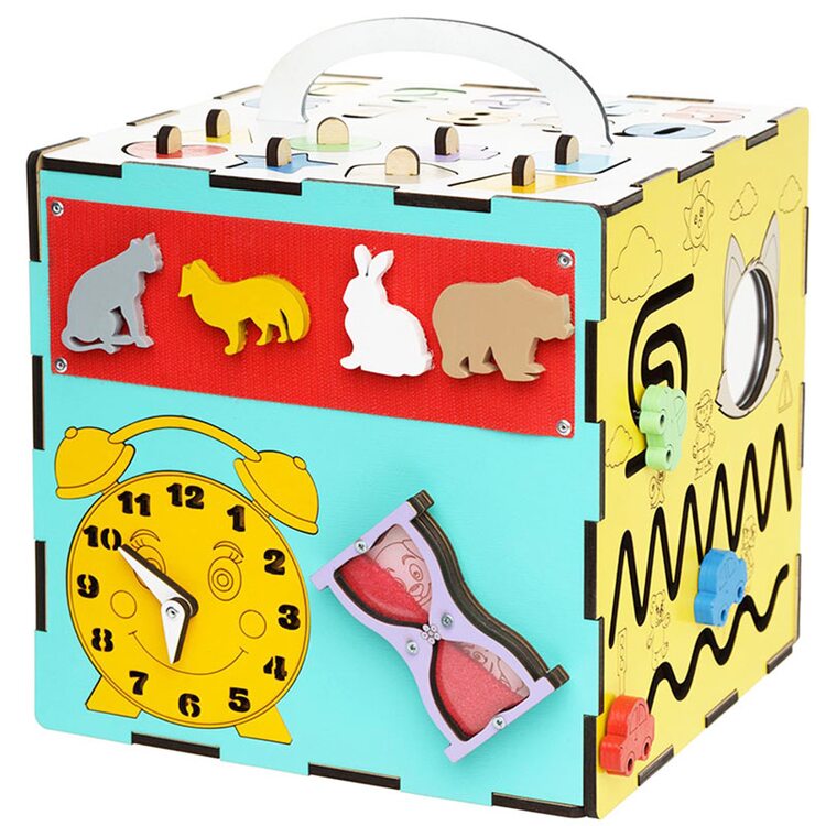 Многофункциональная игрушка на развития логического, сенсорного, пространственного мышления. В игрушке заложено 5 игр для раннего развития ребенка: знакомство с геометрическими фигурами и цифрами, шестеренки -цепная реакция, часики, деревянный лабиринт-дорожка, игра "Замочки". Прекрасный вариант для подарка маленькому любознайке.