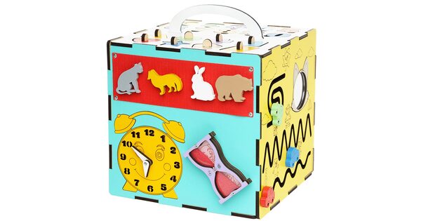 Не всегда в детской комнате есть место для большого бизиборда. Поэтому в домашнем воспитании большое распространение получили бизикубы. Они более компактные и предлагают солидный ассортимент различных игр для развития малыша!