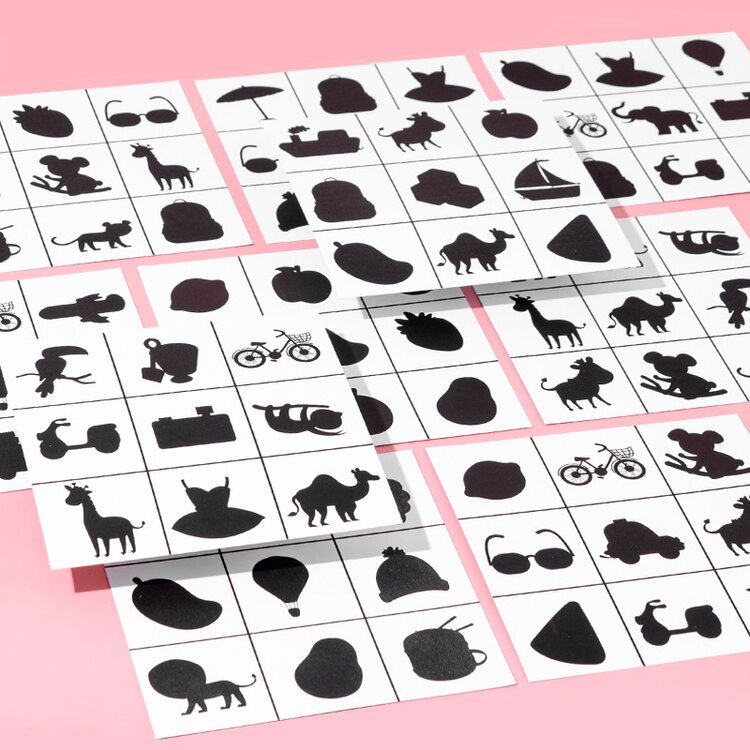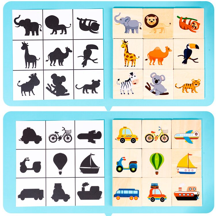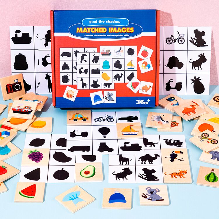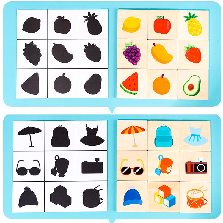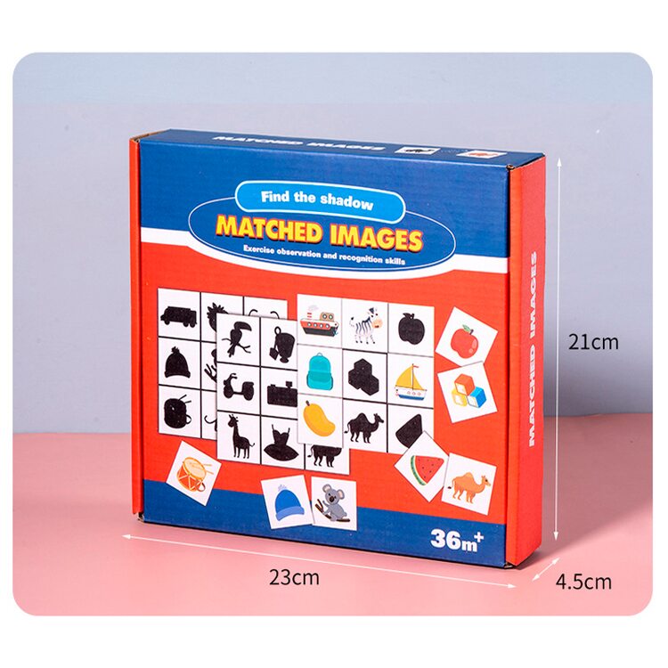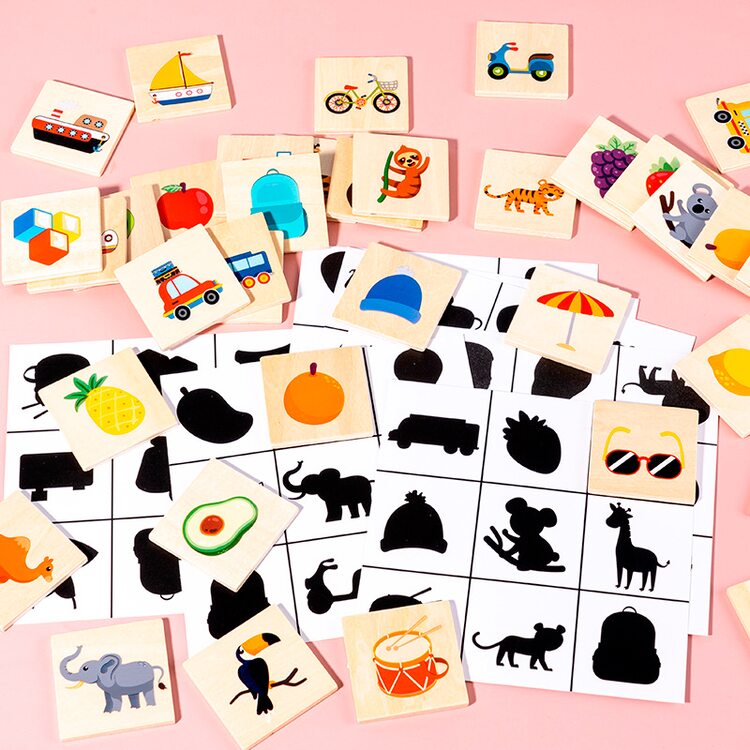 Развивающая игра для малышей. В наборе 36 деревянных фишек с красочными изображениями различных предметов, которые нас окружают и таким же количеством игровых полей, но на данных полях картинка нарисована черной краской, как тень (9 карточек). Для малышей от 2-х лет игра заключается в том, чтобы на поля черного цвета разместить такую же картинку, но уже цветную. Ребенок учится логически мыслить, тренирует память, пространственное мышление, воображение, а также находить рисунок по форме, размерам. Игра для всей семьи (ребенок от 4 лет) - лото. Суть игры: в мешочек складываются все фишки (в комплект не входит), затем вынимают их по одной, называют название картинок и отдают тому у кого тень в игровом поле совпадает с изображением на фишке, которую вытащили. Выиграл тот, кто первым заполнил все игровые поля цветными картинками.