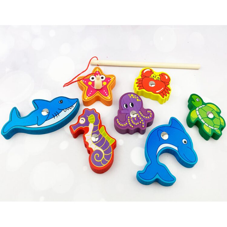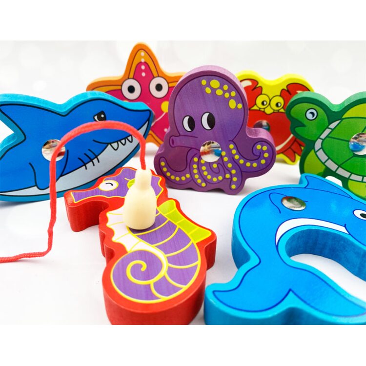 Рыбалка с объемными фигурками рыбок, с которыми можно играть и отдельно.