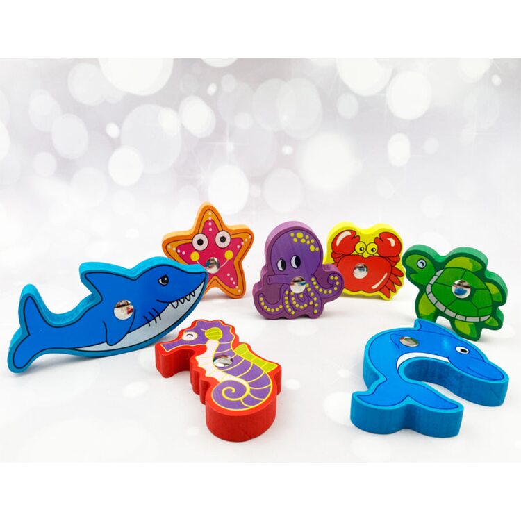 Объемная рыбалка «Рыбки» развивает сноровку и координацию. Также она пополнит словарный запас! Назовите малышу всех животных на картинке и охарактеризуйте их. Пусть ребенок знает, чем кит отличается от акулы, морская звездочка от рыбки, дельфин от черепахи!
