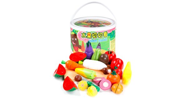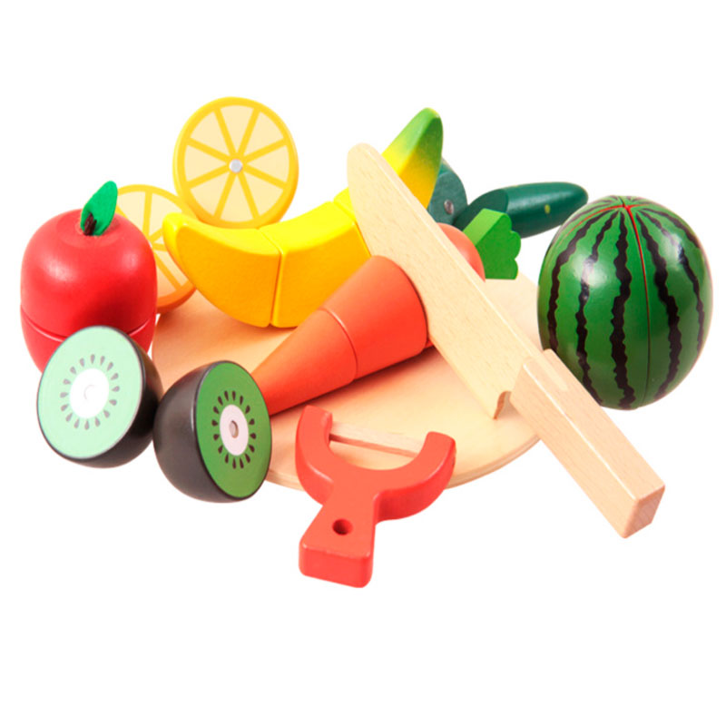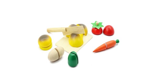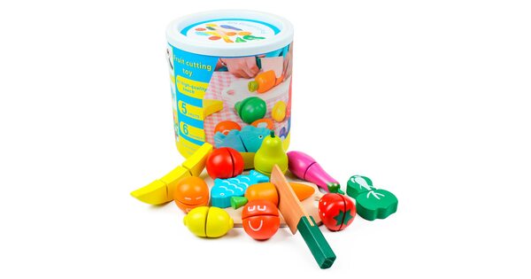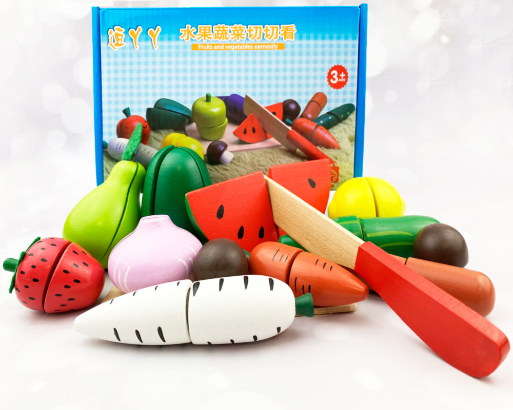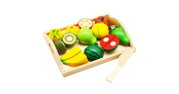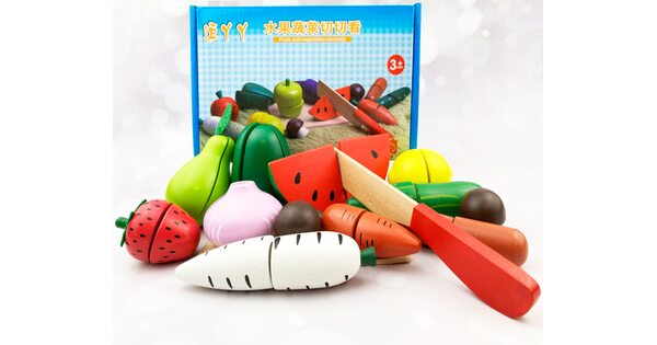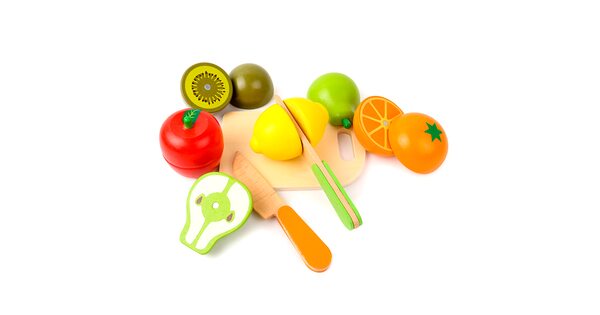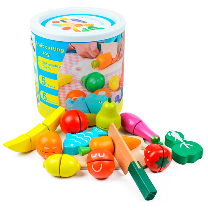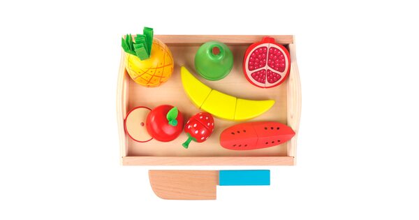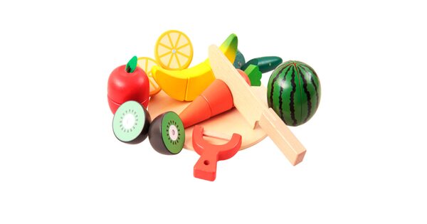 Обычно в распоряжении юного помощника целый набор. Помимо игрушечных плодов, в него входят разделочная доска и деревянный нож. Иногда – 2 ножа для резки, чтобы играли двое детей.