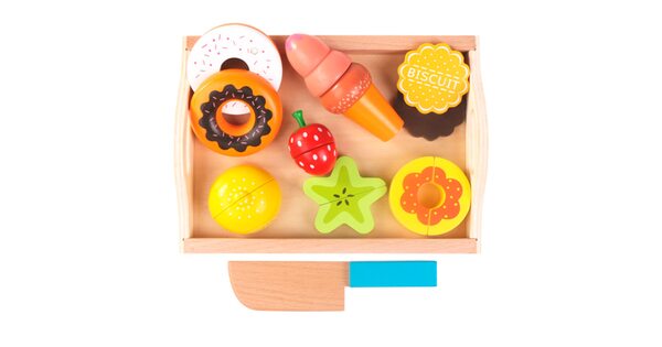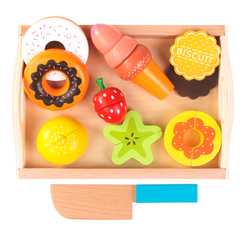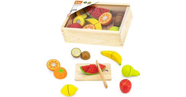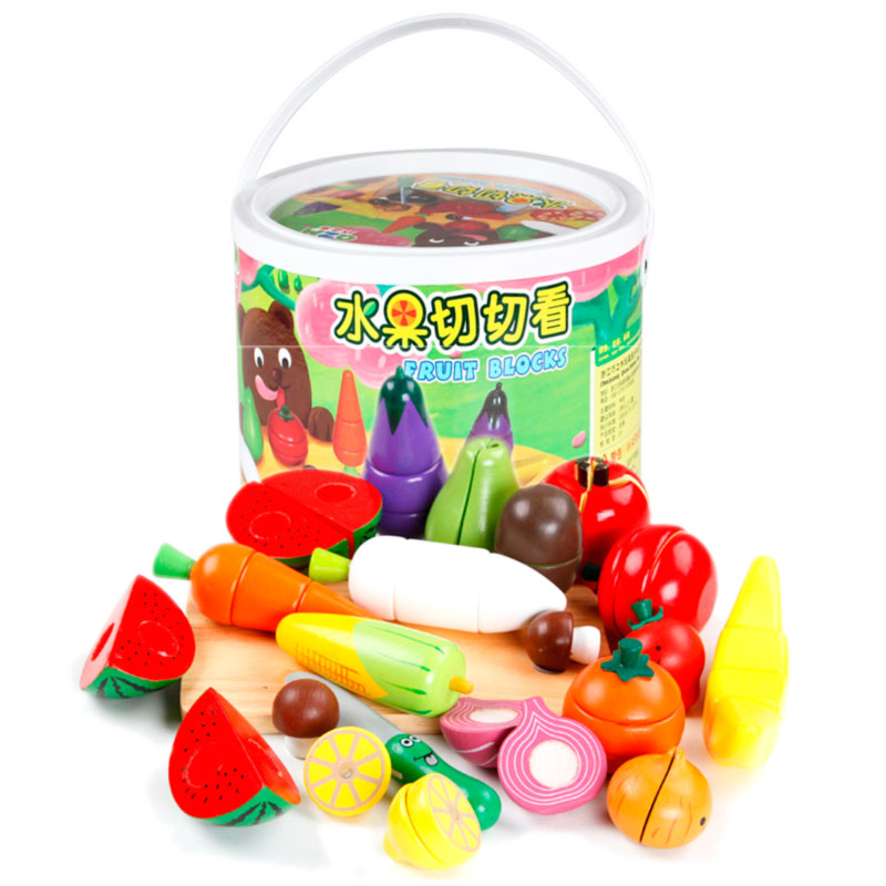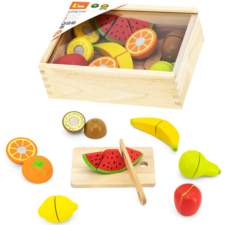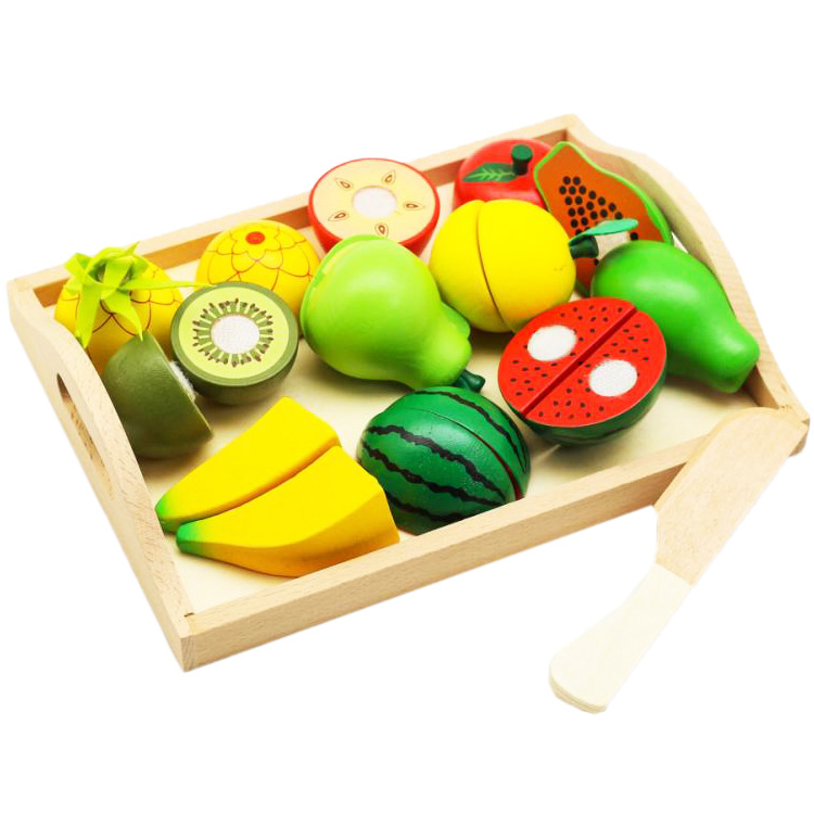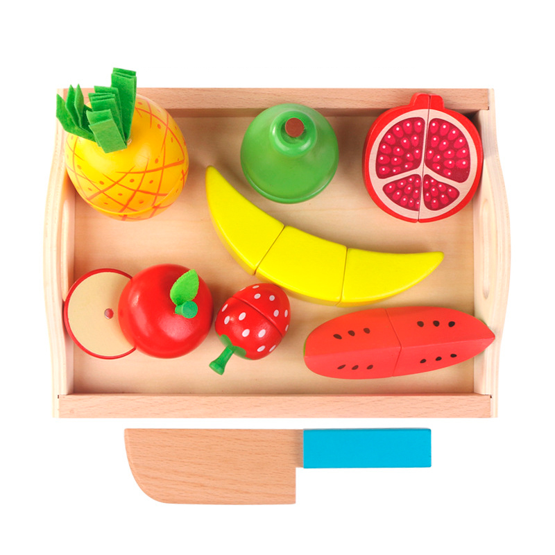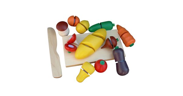 Обычно в распоряжении юного помощника целый набор. Помимо игрушечных плодов, в него входят разделочная доска и деревянный нож. Иногда – 2 ножа для резки, чтобы играли двое детей.