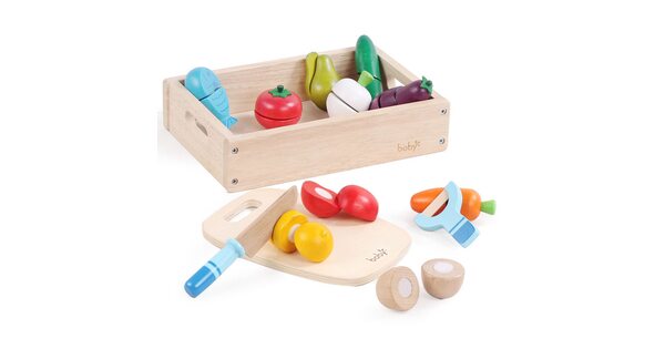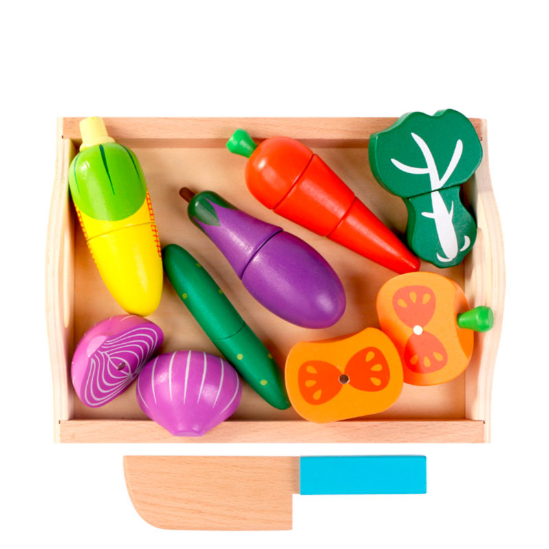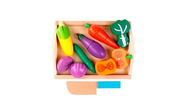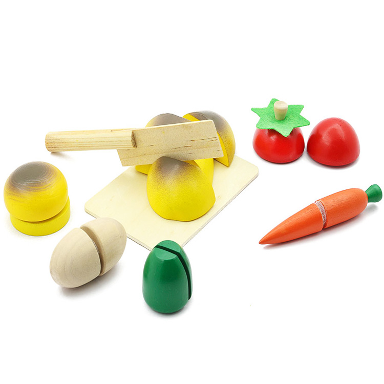 Среди детворы 2-4-х лет есть немало желающих помочь маме на кухне. Для таких «помощников» придумали специальные наборы: разрезные овощи и фрукты на липучках. Конечно, не настоящие! Это комфортные для маленьких рук деревянные игрушки. Выглядят очень реалистично и натурально.