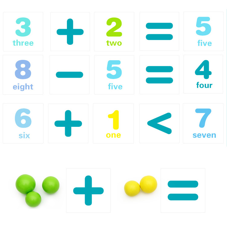 Развиваем мелкую моторику, знакомимся с цветами, понятиями «больше-меньше», сортируем по нескольким признакам (размер, цвет, количество и др.). А также учимся решать простейшие арифметические примеры на «+» и «-» способом перекладывания шариков с одной тарелочки в другую. В комплект входят двухсторонние карточки: на одной стороне нарисована цифра или знак, а на второй - арифметические примеры, которые нужно решить используя разноцветные шарики.