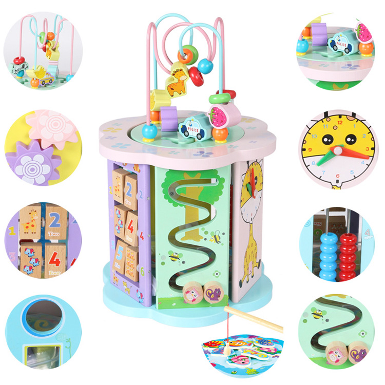 Подарите ребенку много игр для раннего развития в одной игрушке. Бизикуб «Маленький гений» отличный вариант для такого подарка. На гранях куба разместились 8 игр, а также рыбалочка с рыбками и улочкой. Для рыбалки на нижний грани куба нарисованный пруд, в который можно запустить рыбок.