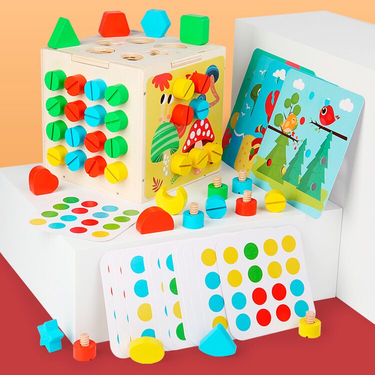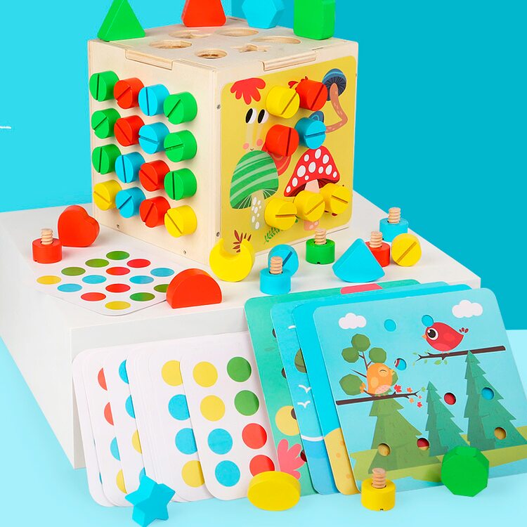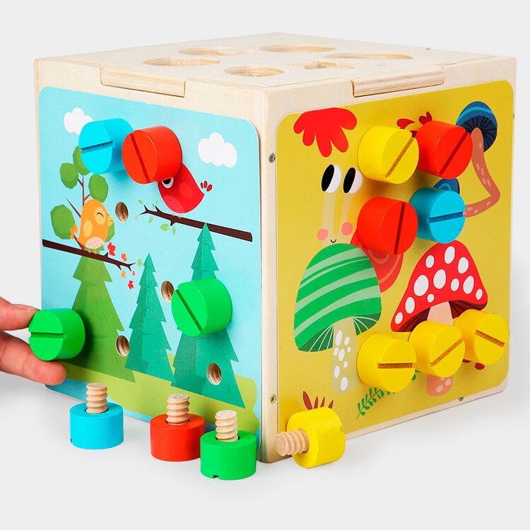 Для развития мелкой моторики в комплект входят болтики 4-х цветов, которые нужно вкручивать в грани куба. Болтики можно вкручивать с помощью пальчиков или отвертки (входит в комплект).