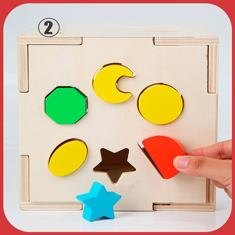 Развивающая игра, которая поможет ребенку развить мелкую моторику, познакомится с геометрическими фигурами, различными цветами, научит выполнять задания согласно карточкам. Две грани на кубе с отверстиями для гео-фигур - игра сортер. Играя, ребенок развивает сенсорные способности, учится находить нужную фигуру для определенного отверстия.