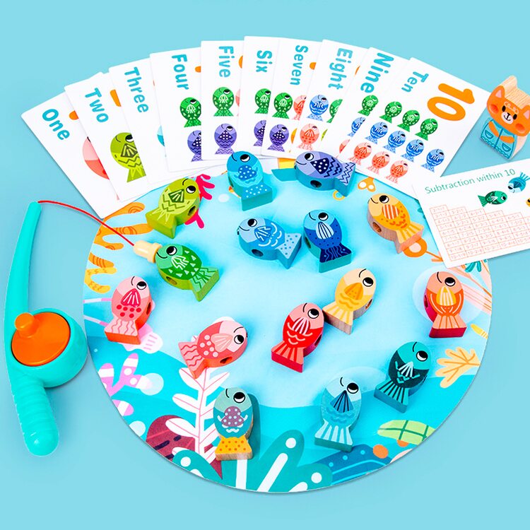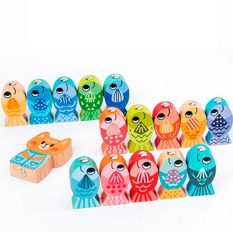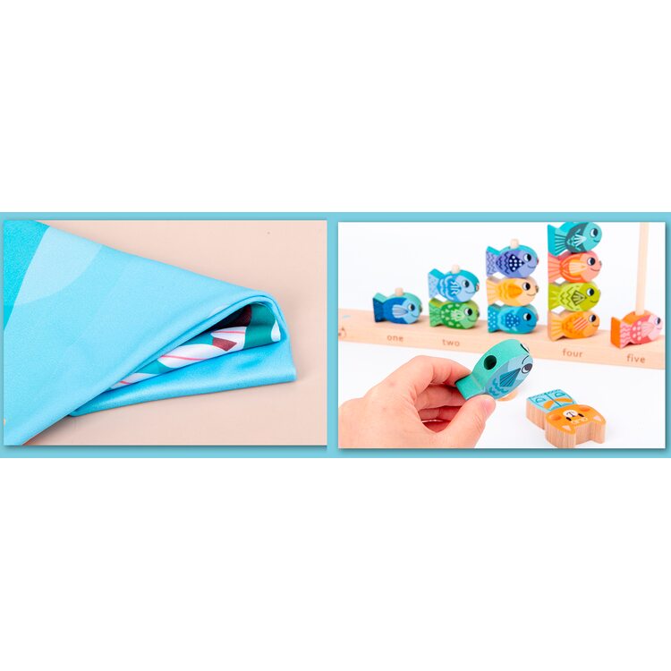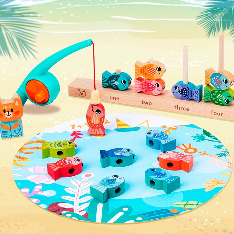 Необыкновенная рыбалка. Никуда не нужно идти или ехать, а прямо дома наловим рыбки, да побольше. Рыбки можно нанизывать на специальную платформу со штырьками от 1 до 5 шт. или нанизывать на шнурочек, как шнуровку (шнурок в комплект не входит). В комплект входят карточки с заданиями. Играя, ребенок сможет научится координировать свои движения, точность, терпение, научится считать, выполнять задания.