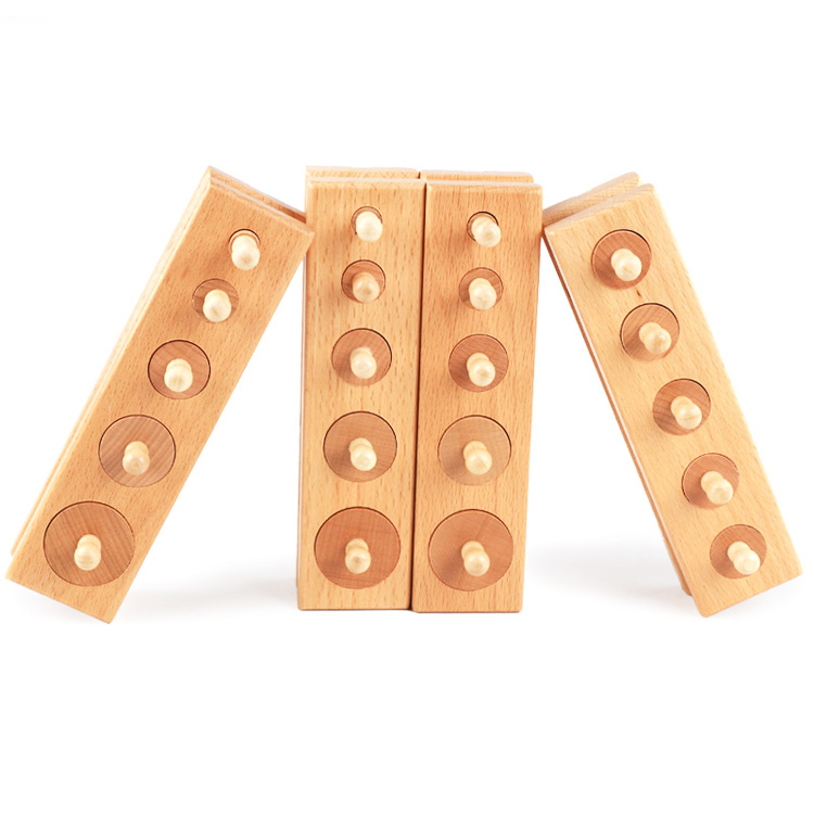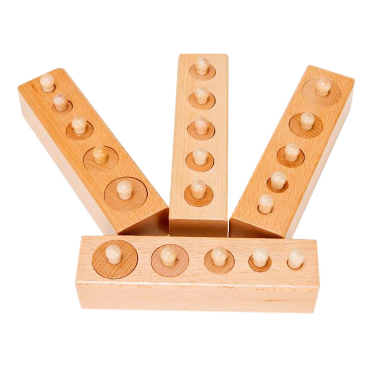 Игрушка представляет собой отличный развивающий комплект деревянных предметов, отличающихся по высоте и диаметру деталей. Блоки с цилиндрами-вкладышами (маленькие) от ТМ OHye научат ребёнка визуально различать величину и толщину предмета, искать между ними соответствие, разделять их по парам.