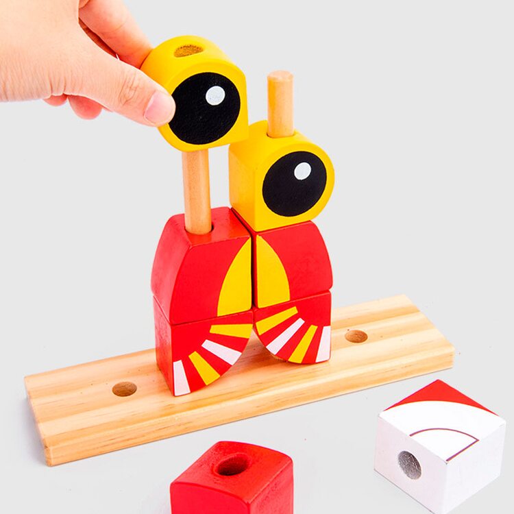 Необычной задумки пирамидка-пазл, которая состоит из 4-х штырьков и множества деталей, с которых можно выложить фигурку животного или сложить узор. Набор состоит из основания, 4-х съемных штырьков, 12 объемных деталей, а также книжечка-вкладыш с примерами схем различных фигур, которые можно выложить с предложенных деталей. Всего 10 схем.