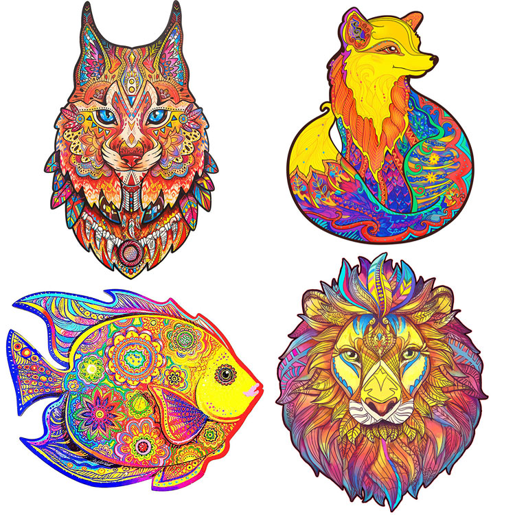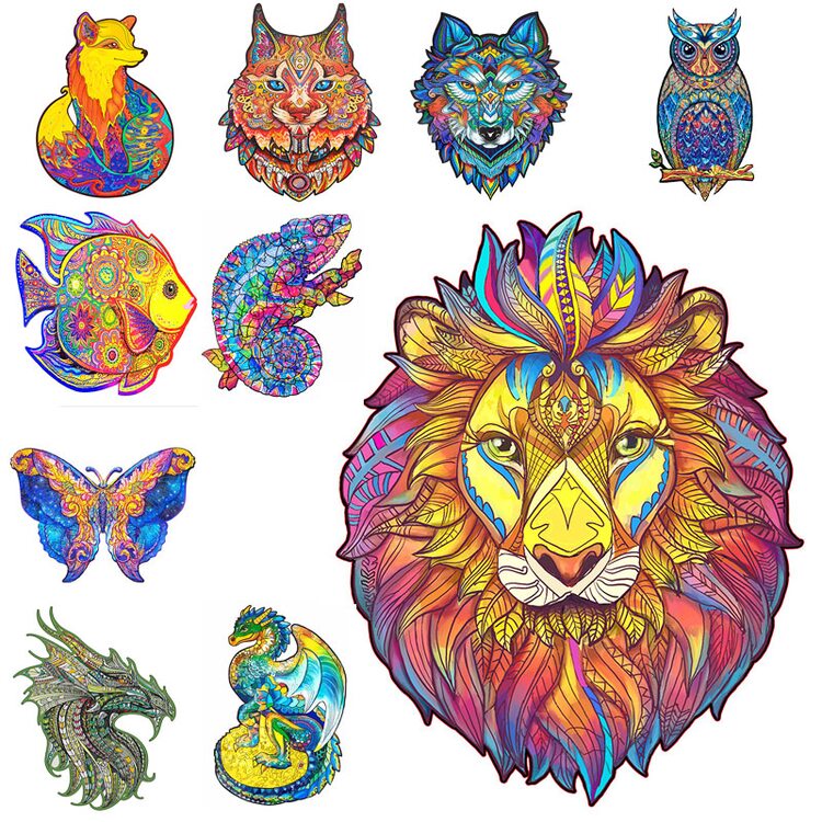 Яркие, необычного дизайна и формата пазлы со множеством деталей в виде различных животных. Каждый пазл представляет собой невероятную картинку, которая состоит из деталей разных размеров и форм. В пазлах входят детали в виде различных видов маленьких животных, которые служат как детали для сборки целостной картинки.