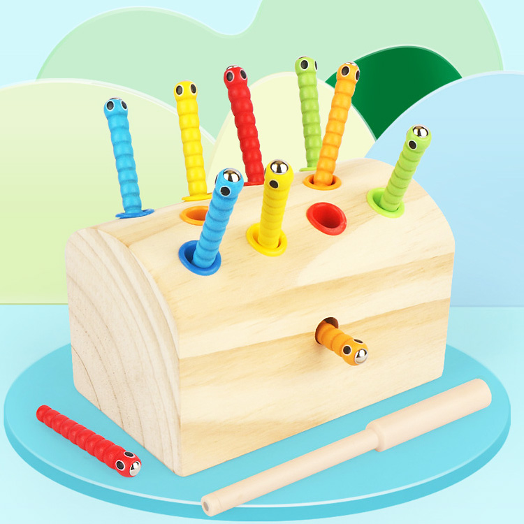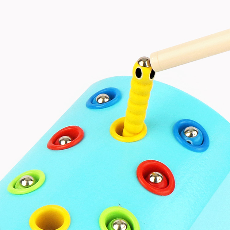 Представляем Вашему вниманию еще один вид уже полюбившейся всеми магнитной рыбалки с гусеничками и цветными вставками. В данном варианте ячейки для червячков имею вставки, цвет которых совпадает с цветом червячка, который там обитает. Играя, ребенок выучит основные цвета, сможет легко определить домик для червячка, научится координировать свои движения, считать.