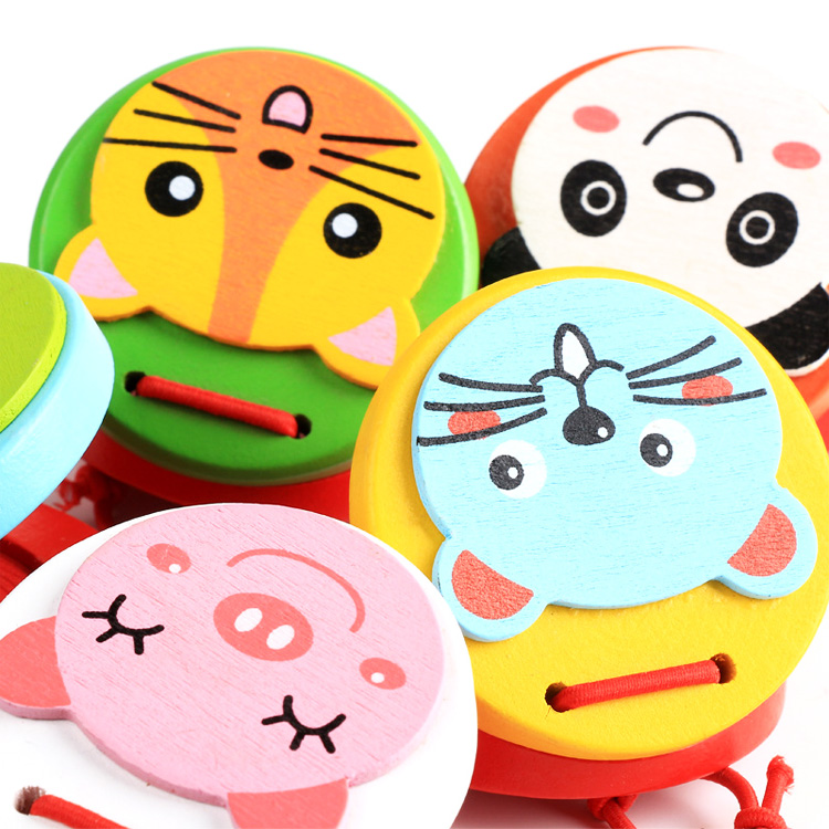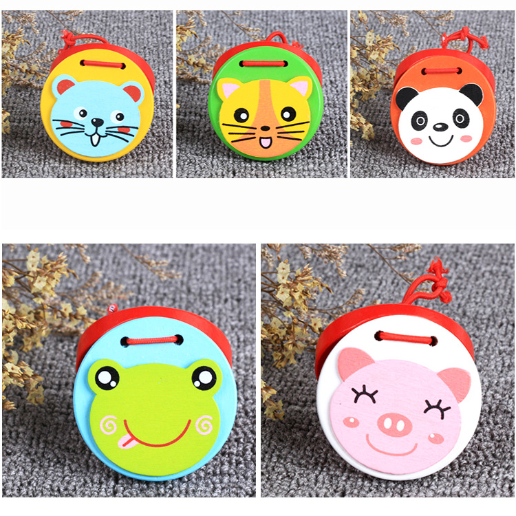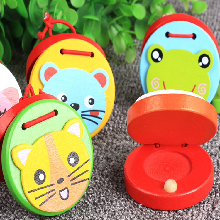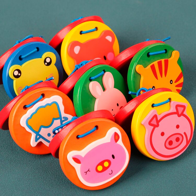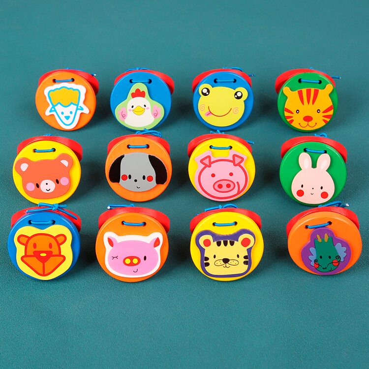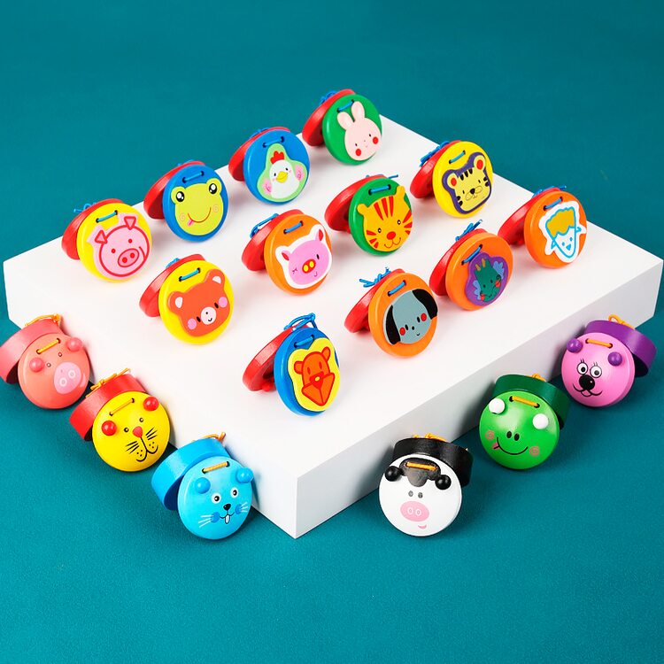 Ручные кастаньетки с симпатичными животными. Кастаньеты удобного размера, помещаются в ладошку юного музыканта. Для того чтобы на них играть достаточно только разжимать и зажимать ладошку. Для старших детей кастаньетку нужно зажать между большим и 4-мя оставшимися пальчиками.