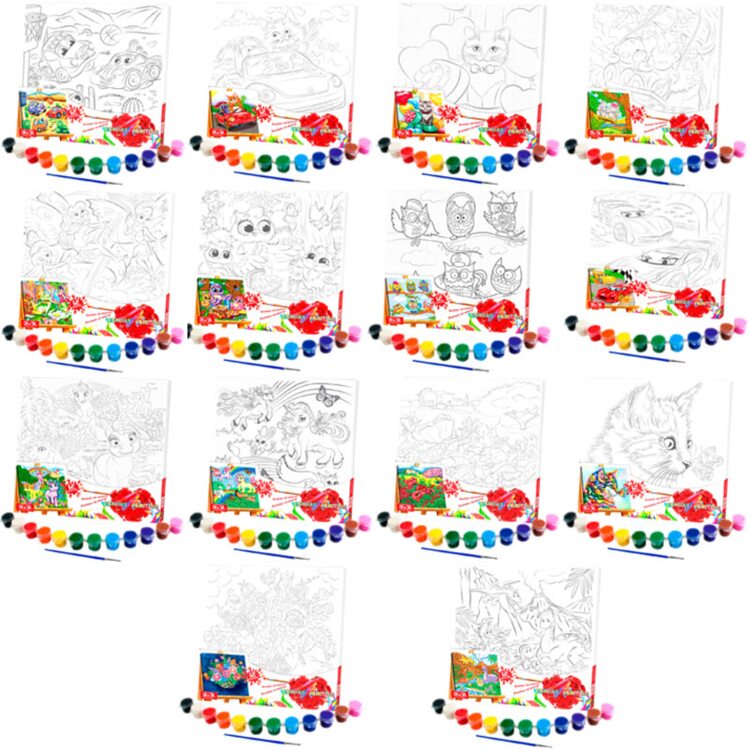 Картина своими руками! Развиваем творческие способности, аккуратность, внимание, усидчивость. Широкий выбор картин различных тематик позволит создать уникальные шедевры для подарков своим близким, знакомым. В комплект входит пример цветной картинки, но Вы можете самостоятельно разрисовать на свое усмотрение. В каждый набор входят акриловые краски и кисточка, а также таблица цветов и оттенков, что позволит Вам правильно смешивать цвета для получения нового.