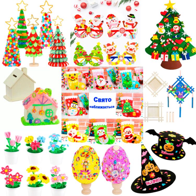 В серию входят различные поделки, которые Ваш ребенок сможет сделать своими руками. Новогодние чудо-дерево с украшениями. Набор состоит из елочки зеленого, красного или белого цвета и набором деревянных игрушек, которыми нужно украсить красавицу-елочку.