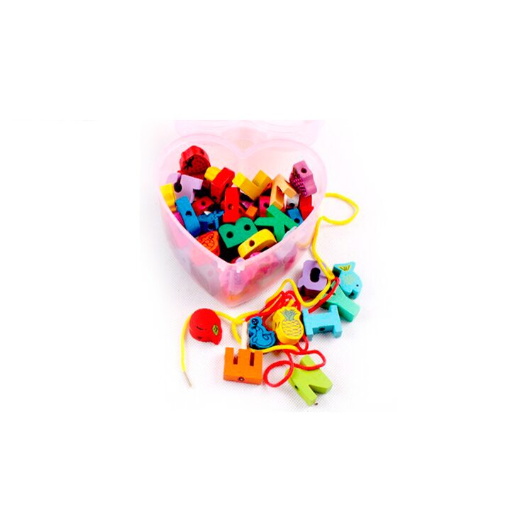 Деревянная шнуровочка, где вместо привычных бусинок нужно шнуровать буквы английского алфавита. Также, среди деталей шнуровочки есть фрукты и животные. Буквы в 2-х экземплярах, что позволяет составлять простенькие слова.