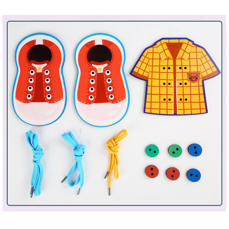 Прекрасный набор для практических занятий, которые помогут ребенку научится правильно завязывать шнурки и пришивать пуговки, развить мелкую моторику. В комплект входит рубашка, 6 пуговиц, 2 башмака, 3 шнурочка 2-х типов.