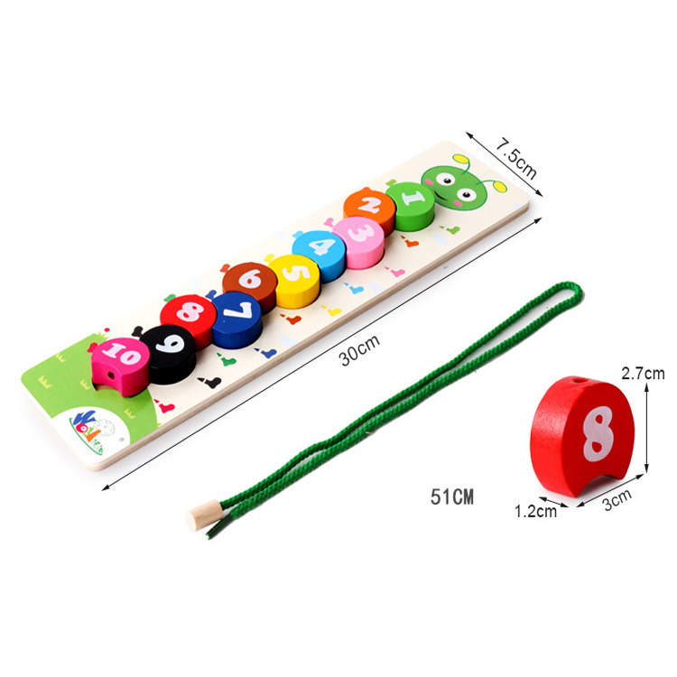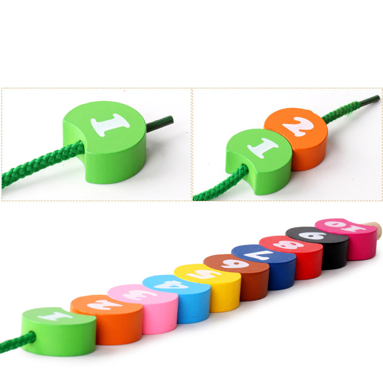 Шнуровка в виде вкладышей с нарисованными цифрами от 1 до 10. Цифровая гусеничка познакомит ребенка с цифрами, научит нанизывать детали на шнурочек.