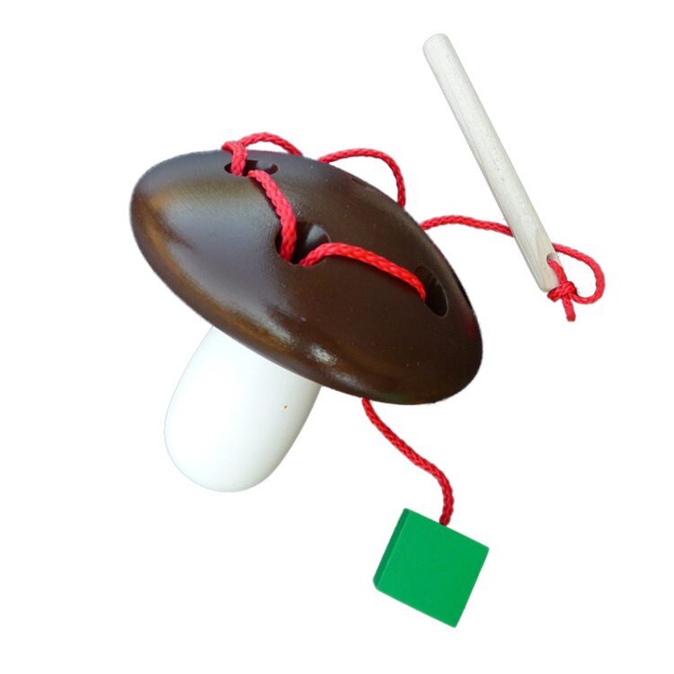 Такие игрушки замечательно подходят для того, чтобы обучить детей первым азам письма, а закреплять их немножко позже будем на детской доске для рисования. Не стоит забывать о том, что все дети любят подражать взрослым. И ребенок с удовольствием станет играть со шнуровкой, потому что игровой процесс с ней очень похож на шитье или вязание. Проталкивая специальную "иглу" в отверстия на шляпке гриба, ребенок сможет координировать свои движения. Играя в шнуровку Гриб белый, ребенок сам того не зная, будет обучаться движениям, с помощью которых люди пишут, к тому же с помощью удобного деревянного штырька вы сможете научить ребенка правильно держать карандаш или ручку в будущем. Кроме того, эта игрушка будет способствовать и развитию речи ребенка, ведь эти способности напрямую связаны с навыками письма и моторикой рук.