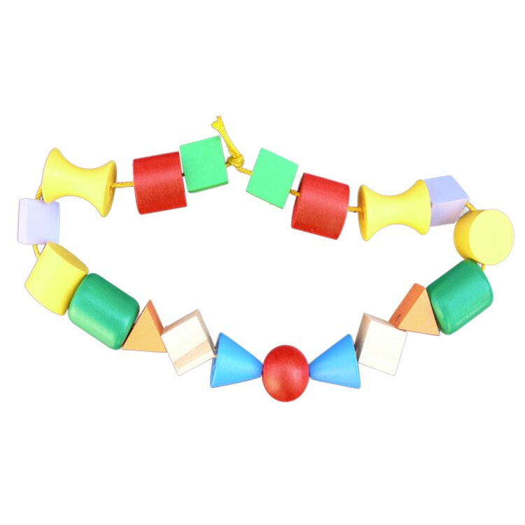 Для первого знакомства малыша со шнуровкой бусами из дерева, можно например, когда он лежит в кроватке, маме надеть ее на шею или на руку, а ребенок будет с удовольствием изучать яркое украшение. Из шнуровки можно сделать так же симпатичные бусы для любимой игрушки малыша. А так как все маленькие дети стараются попробовать все игрушки на вкус, ничего вы будете уверены, что эта игрушка совершенно безопасна для непоседы, ведь она выполнена из натуральной древесины, и окрашена специальными красками.
